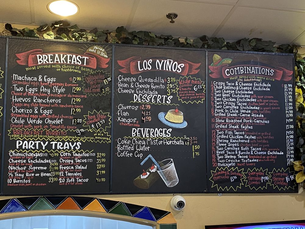 Scrambled eggs and choice of bacon, ham, sausage, machaca, chorizo, or a la Mexicana. Served with rice and beans inside.